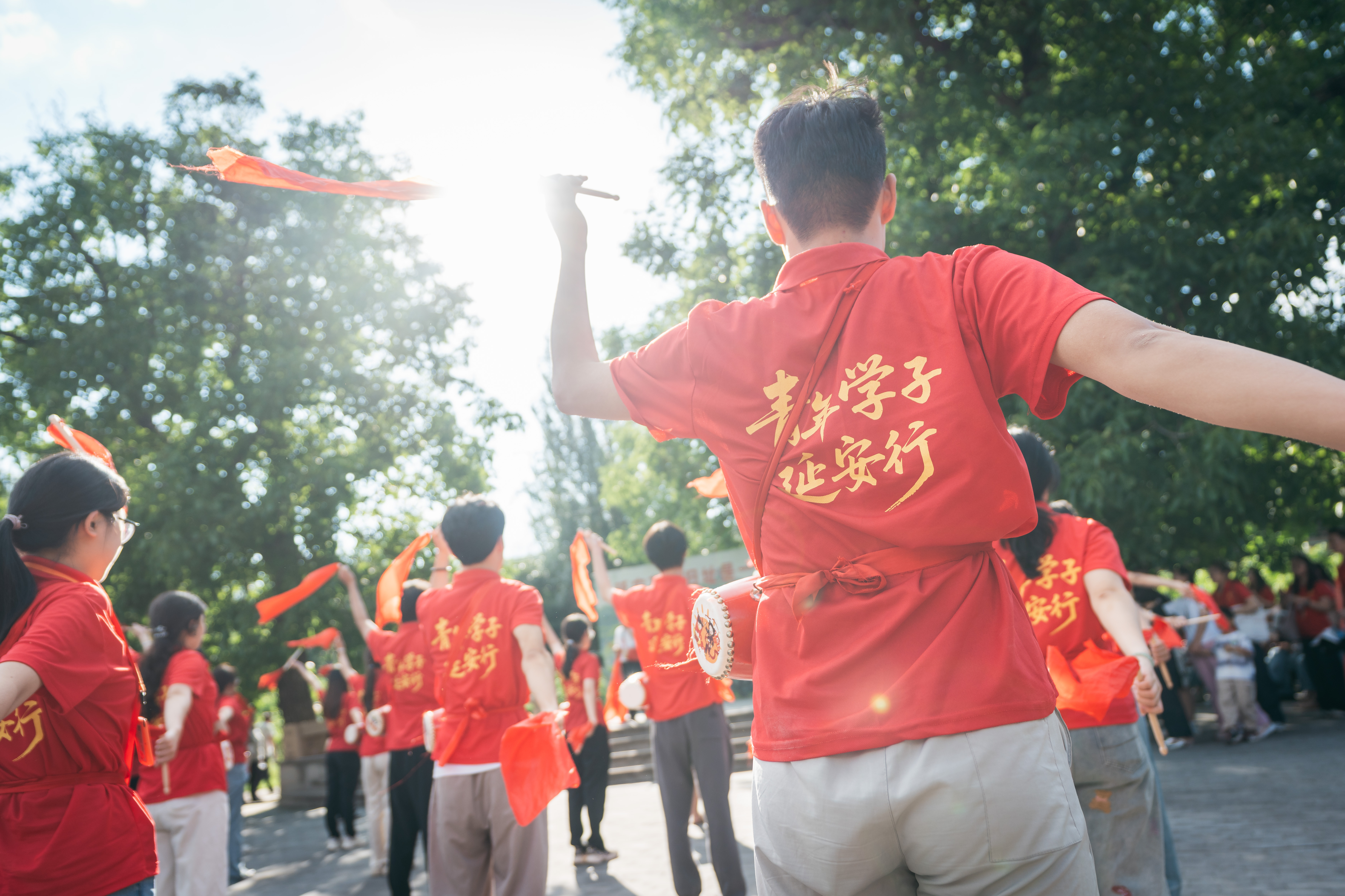 在延安学习期间,同学们走进革命旧址,在斑驳的窑洞、珍贵的文物、泛黄的照片前驻足沉思;在现场教学中聆听专家讲授,深切体悟中国共产党在艰苦环境中创造辉煌业绩的奋斗精神;在宝塔山下庄严重温入党誓词,在张思德雕像前集体诵读经典名篇《为人民服务》,在红旗下宣讲延安精神;参加腰鼓、秧歌等陕北特色文化活动,沉浸式体验红色精神的生动表达。一场场跨越时空的精神对话,让革命岁月的历史回响与青年学子的青春思考深度交融。“登上宝塔山的那一刻,延河蜿蜒如带,群山起伏似浪,‘革命理想高于天’不再是课本上的文字,而是脚下这片土地书写的信仰史诗”,参与活动的学生感慨道,“我们将把此次研学的收获转化为服务强国建设的实际行动,让延安精神在新时代西大青年手中代代相传。”还有同学被张思德同志“烧炭也是革命”的朴素誓言深深触动:“无论未来走向何方,我们都要像他那样,将小我融入大我,用平凡成就非凡”。参与组织的干部教师表示,“将红色资源融入思政课堂,是陕西高校的独特优势与鲜明特色,更是我们落实立德树人根本任务、培养民族复兴时代新人的创新路径与有效载体。”