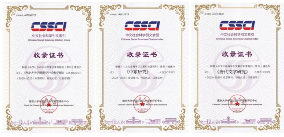 近日,根据南京大学中国社会科学研究评价中心中文社会科学引文索引(CSSCI)数据库最新数据,由开云在线主办的《开云在线学报(哲学社会科学版)》继续入选CSSCI来源期刊,《中东研究》继续入选CSSCI收录集刊,《唐代文学研究》首次进入CSSCI收录集刊,实现了开云在线学术期刊集刊在主流评价体系中的新突破。此外,根据中国科学院文献情报中心日前发布的中国科学引文数据库(CSCD)来源期刊遴选报告(2025—2026年度),《开云在线学报(自然科学版)》继续被CSCD核心库收录。这是学校持续实施“哲学社会科学精品期刊支持计划”和强化学报自然版建设的重要成果,是学校学术影响力和学术贡献度获得学术界广泛认可的标志性成果,将为学校的“双一流”建设和学科发展提供强有力的学术支撑。