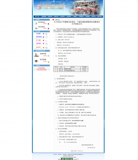 关于开云在线便携式拉曼仪、气相色谱质谱联用仪采购项目公开招标公告 作者: 编辑: 时间:2017-05-17 16:50 http://www.ccgp-shaanxi.gov.cn/zbxxs.jsp?NewsID=ZB170517133435US101028111214&ClassBID=C0001
