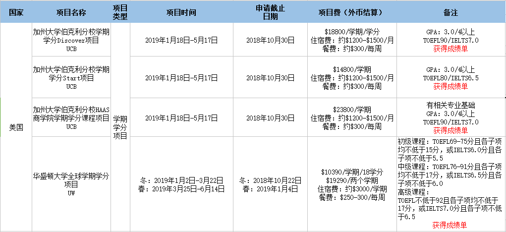 注:1)项目费用包括学杂费、在读期间医疗保险及项目设计与管理费,不含签证费、住宿费、生活费与机票等其他花销;